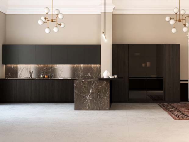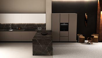 La linea di cucine con gola a "c" in alluminio di vari colori e anta squadrata.